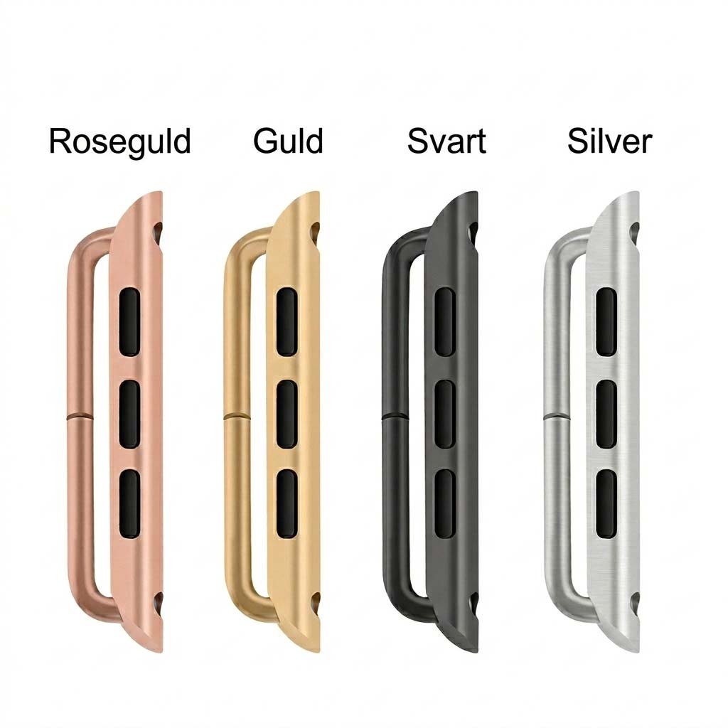 - Perfekt färgmatchning: Välj adaptrar och spännen i svart, silver, guld eller roséguld för att matcha din Apple Watch helt perfekt.