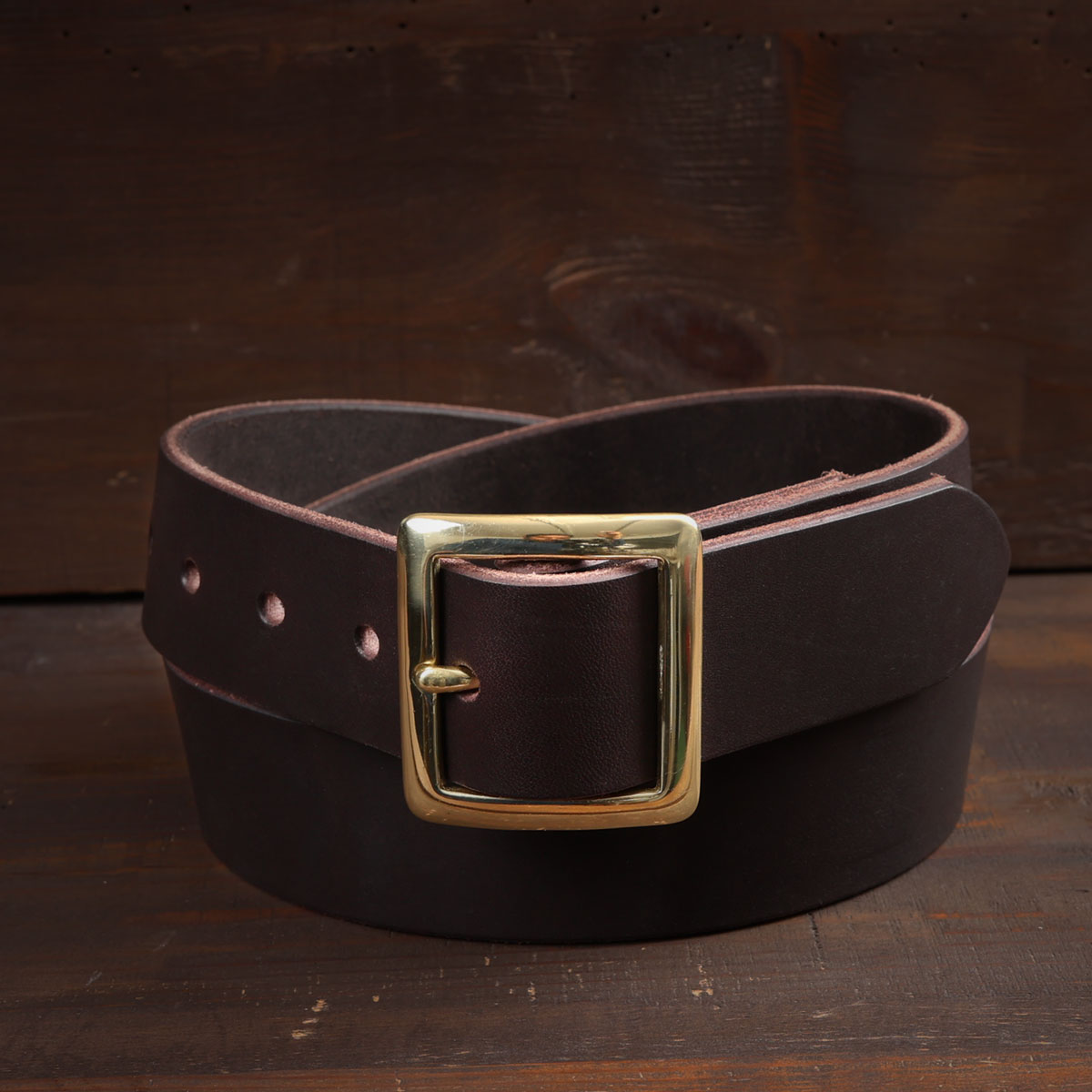 Sam mörkbrunt läderbälte med mässingsspänne – Egenskaper